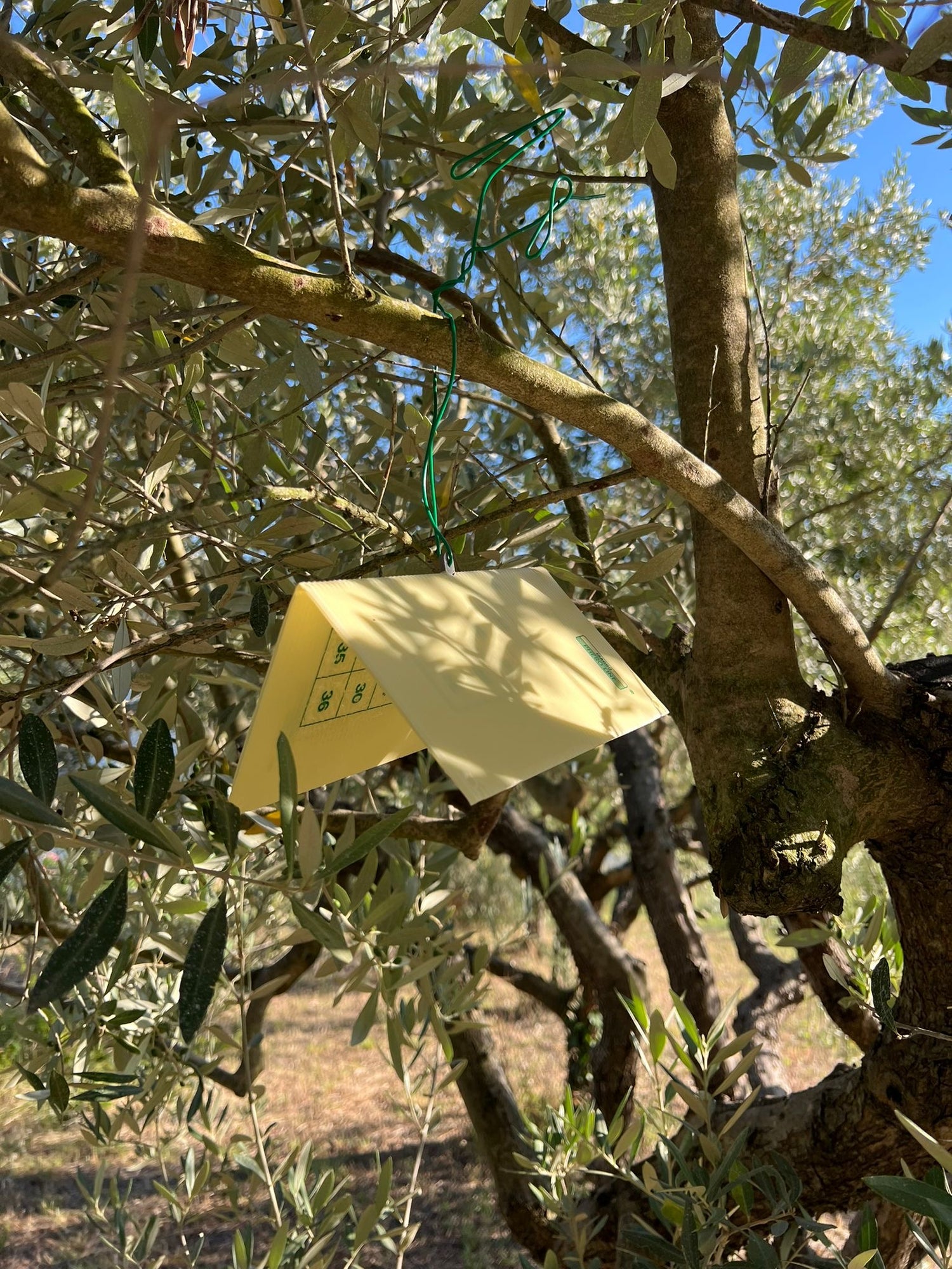 Wir betreiben ökologischen Landbau und verwenden nachhaltige sowie regenerative Anbaumethoden. Einmal im Jahr düngen wir die Olivenbäume mit organischem Kompost. Im Frühling und Sommer werden die Bäume mit natürlichen Mineralien und Kalk besprüht, um die Blätter zu stärken und vor der Sonne zu schützen. Um Schäden durch die Olivenfruchtfliege (bactrocera oleae) zu vermeiden, hängen wir Pheromonfallen in die Bäume, um deren Vorkommen zu überwachen, und bringen dann Bio-Fallen an, die die Fliegen fangen. Als regenerative Maßnahme verarbeiten wir sämtlichen Baumschnitt zu Holzhackschnitzeln und bringen diese unter den Bäumen aus. Das verbessert die Bodenstruktur, Feuchtigkeit und mikrobielle Aktivität und unterstützt so ein gesundes Bodenökosystem. Unser Olivenhain ist seit 2025 vollständig bio-zertifiziert. Unten finden Sie weitere Bilder von unserer Olivenölproduktion.