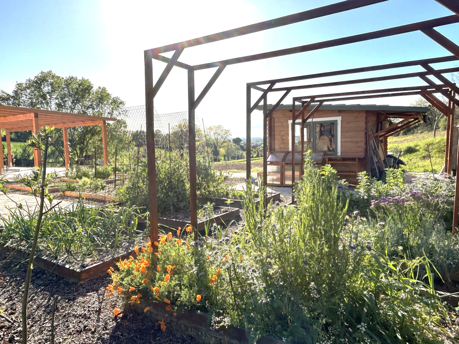 Stiamo creando un paesaggio vivente che sostiene sia la natura che la nostra fattoria. Abbiamo piantato oltre 30 alberi da frutto e ornamentali e più di 200 fiori e arbusti per attirare gli impollinatori, fornire cibo e riparo alla fauna selvatica e rafforzare la biodiversità in tutto il territorio. Quest'anno, aggiungeremo galline libere di razzolare – che ci porteranno uova fresche per colazione – un piccolo laghetto per la fauna selvatica e un nuovo orto per rendere la fattoria ancora più viva ed equilibrata.