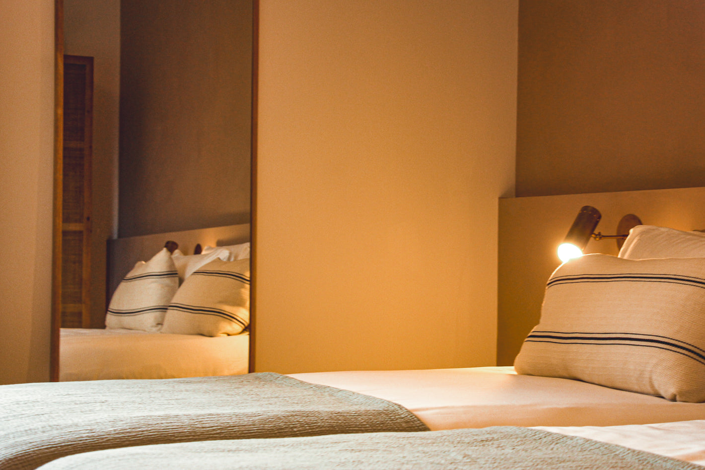 Raggia has a warm Mediterranean feel, with soft earth tones, natural textures, and thoughtful details throughout. A handcrafted desk by our neighbor Maurizio, a leather bench, and sunset views over Recanati. The bright bathroom has clean, natural finishes. Choose between a kingsize bed or two single beds - ideal for solo travellers or friends.